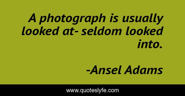 This page presents the quote "A photograph is usually looked at- seldom looked into.". Author of this quote is Ansel Adams. This quote is about photography, art, art-appreciation,.