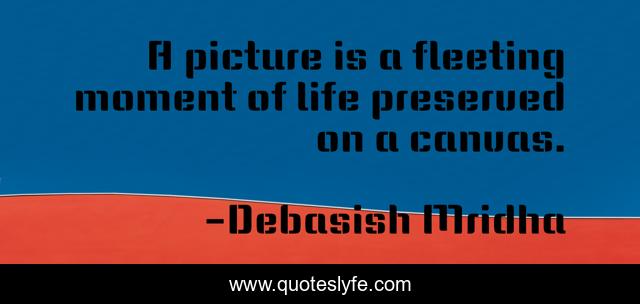 This page presents the quote "A picture is a fleeting moment of life preserved on a canvas.". Author of this quote is Debasish Mridha. This quote is about art, philosophy, debasish-mridha, quotes, preserved-on-a-canvas, debasish-mridha-md, inspirational, enthusiasm,.