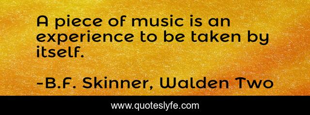 This page presents the quote "A piece of music is an experience to be taken by itself.". Author of this quote is B.F. Skinner, Walden Two. .
