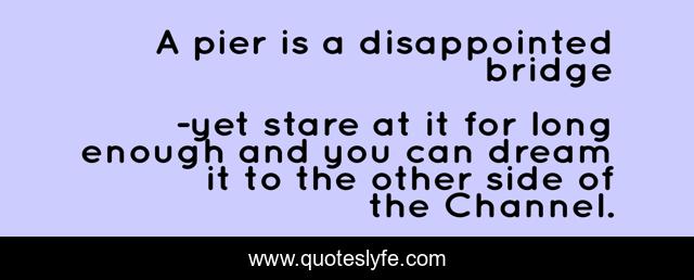 "yet stare at it for long enough and you can dream it to the other side of the Channel. Quotes." Quoteslyfe.com, 2025. Fri. 05 Dec. 2025. <https://www.quoteslyfe.com/quote/A-pier-is-a-disappointed-bridge-244345>.