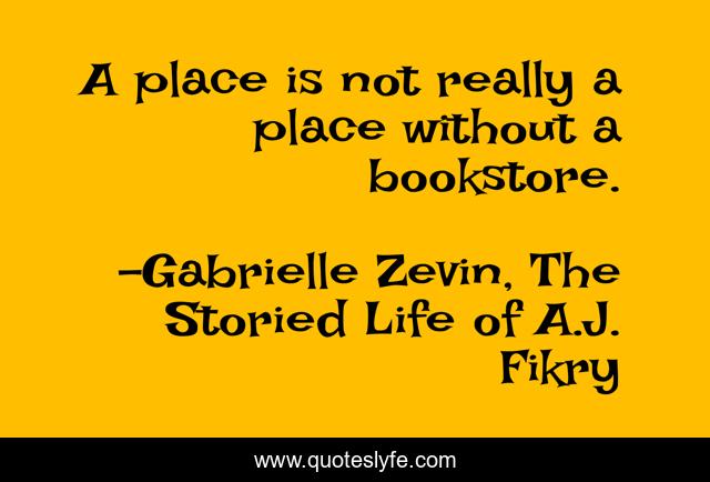 This page presents the quote "A place is not really a place without a bookstore.". Author of this quote is Gabrielle Zevin, The Storied Life of A.J. Fikry. This quote is about place, bookstore, books,.