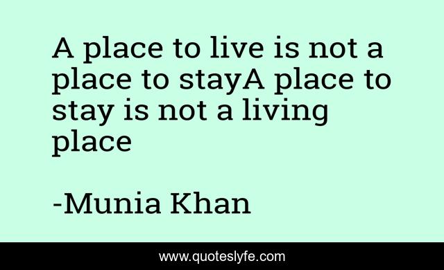 This page presents the quote "A place to live is not a place to stayA place to stay is not a living place". Author of this quote is Munia Khan. This quote is about abode, home, place, living, stay,.