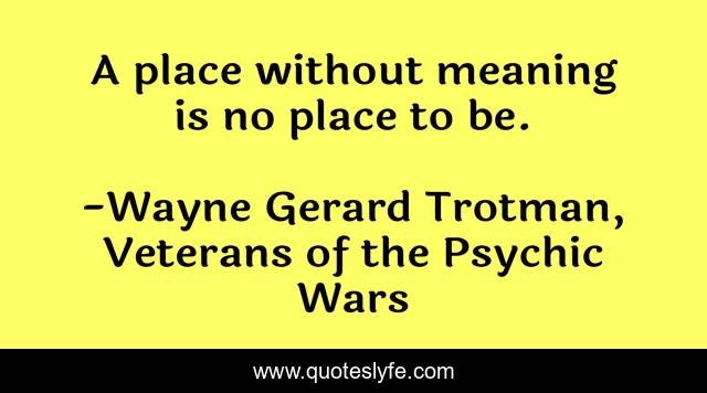 "Wayne Gerard Trotman, Veterans of the Psychic Wars Quotes." Quoteslyfe.com, 2025. Sat. 06 Dec. 2025. <https://www.quoteslyfe.com/quote/A-place-without-meaning-is-no-place-142488>.