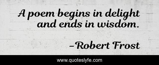 This page presents the quote "A poem begins in delight and ends in wisdom.". Author of this quote is Robert Frost. This quote is about delight, poem, ends,.