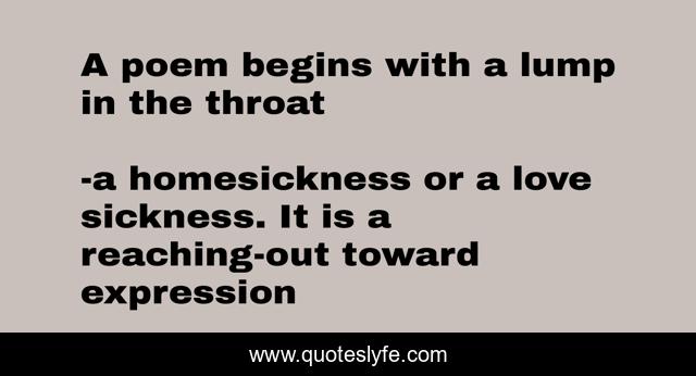 This page presents the quote "A poem begins with a lump in the throat". Author of this quote is a homesickness or a love sickness. It is a reaching-out toward expression. .