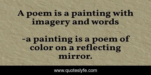 This page presents the quote "A poem is a painting with imagery and words". Author of this quote is a painting is a poem of color on a reflecting mirror.. .