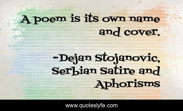 This page presents the quote "A poem is its own name and cover.". Author of this quote is Dejan Stojanovic, Serbian Satire and Aphorisms. This quote is about dejan-stojanovic, poems,.