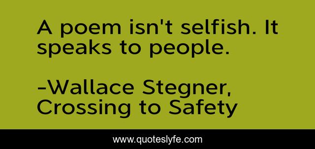 "Wallace Stegner, Crossing to Safety Quotes." Quoteslyfe.com, 2025. Fri. 05 Dec. 2025. <https://www.quoteslyfe.com/quote/A-poem-isn-t-selfish-It-speaks-158368>.