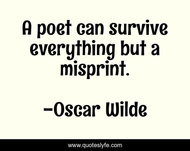 This page presents the quote "A poet can survive everything but a misprint.". Author of this quote is Oscar Wilde. This quote is about poet, survive, everything,.