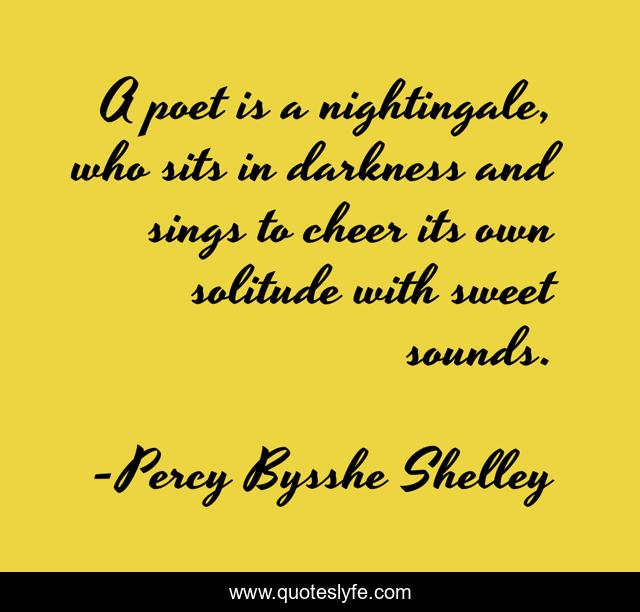 This page presents the quote "A poet is a nightingale, who sits in darkness and sings to cheer its own solitude with sweet sounds.". Author of this quote is Percy Bysshe Shelley. This quote is about sweet, solitude, darkness,.