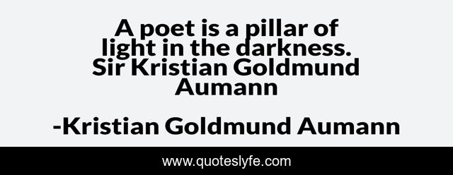 This page presents the quote "A poet is a pillar of light in the darkness. Sir Kristian Goldmund Aumann". Author of this quote is Kristian Goldmund Aumann. .
