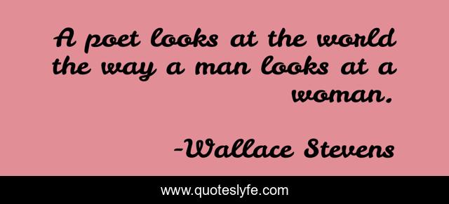 This page presents the quote "A poet looks at the world the way a man looks at a woman.". Author of this quote is Wallace Stevens. This quote is about world, woman, man,.