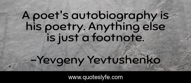 "Yevgeny Yevtushenko Quotes." Quoteslyfe.com, 2026. Wed. 14 Jan. 2026. <https://www.quoteslyfe.com/quote/A-poet-s-autobiography-is-his-poetry-24416>.