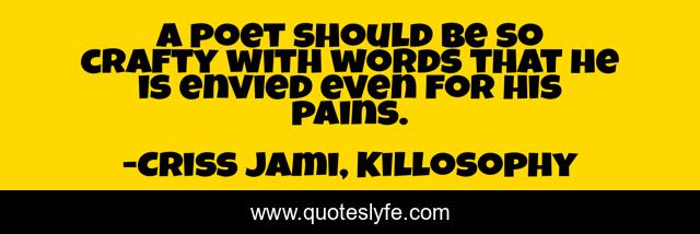 "Criss Jami, Killosophy Quotes." Quoteslyfe.com, 2025. Mon. 08 Dec. 2025. <https://www.quoteslyfe.com/quote/A-poet-should-be-so-crafty-with-24391>.