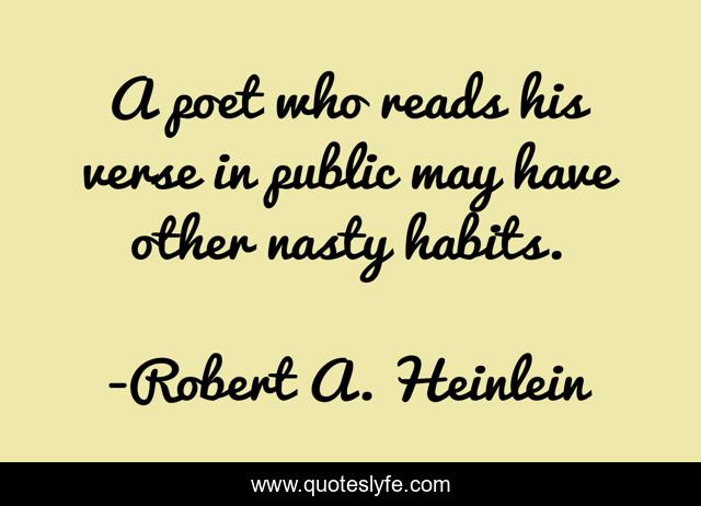 This page presents the quote "A poet who reads his verse in public may have other nasty habits.". Author of this quote is Robert A. Heinlein. .