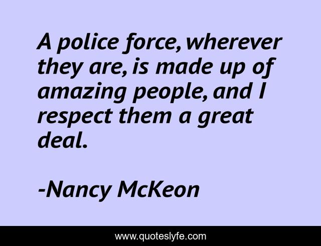 This page presents the quote "A police force, wherever they are, is made up of amazing people, and I respect them a great deal.". Author of this quote is Nancy McKeon. This quote is about great, amazing, people,.