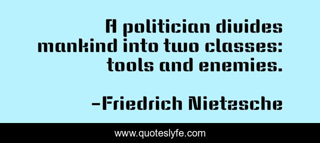 This page presents the quote "A politician divides mankind into two classes: tools and enemies.". Author of this quote is Friedrich Nietzsche. .