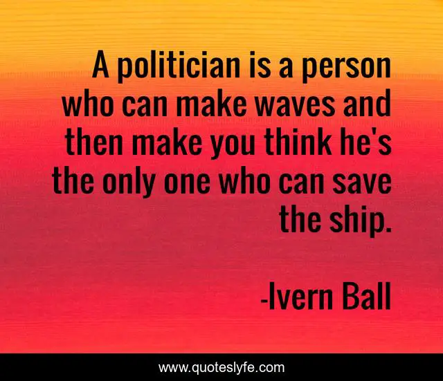 This page presents the quote "A politician is a person who can make waves and then make you think he's the only one who can save the ship.". Author of this quote is Ivern Ball. .