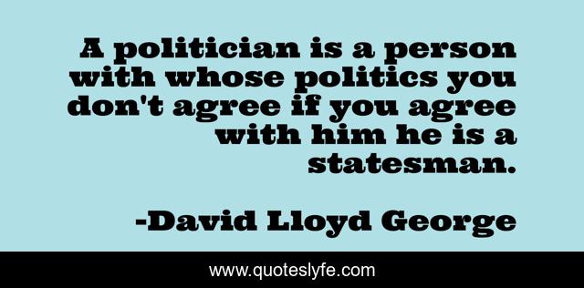 This page presents the quote "A politician is a person with whose politics you don't agree if you agree with him he is a statesman.". Author of this quote is David Lloyd George. .