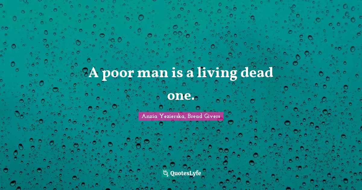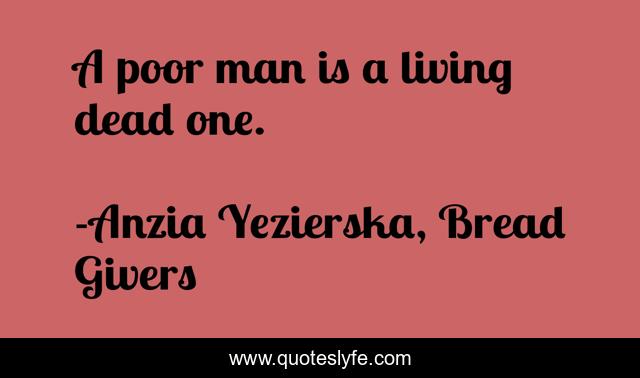 This page presents the quote "A poor man is a living dead one.". Author of this quote is Anzia Yezierska, Bread Givers. This quote is about death, poverty,.