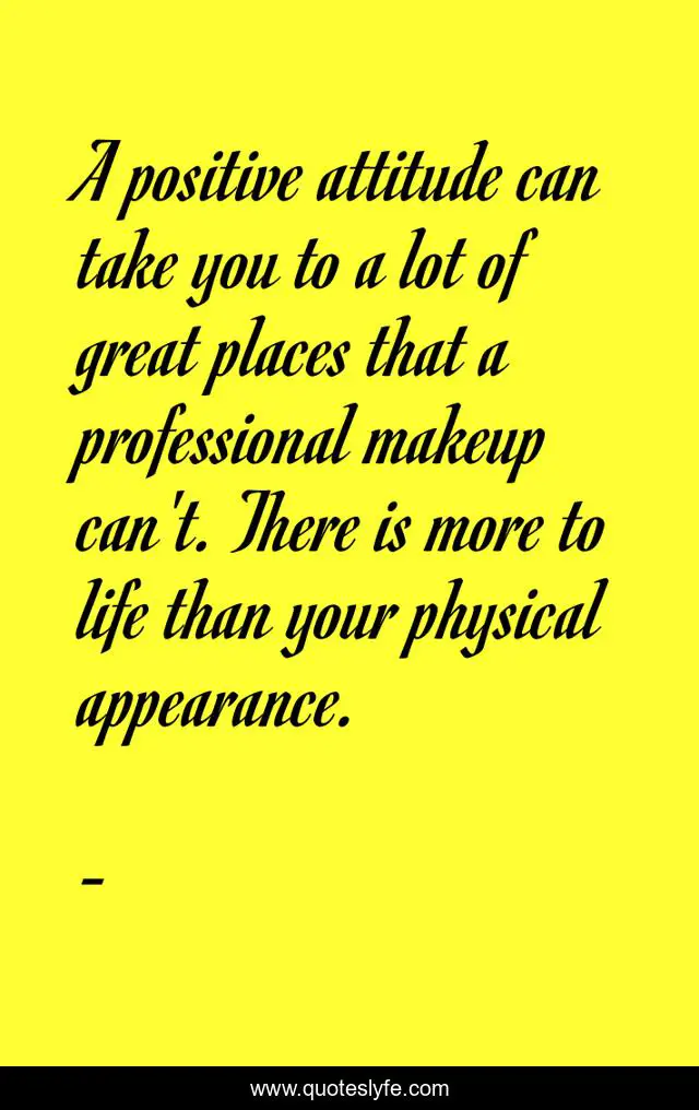 This page presents the quote "A positive attitude can take you to a lot of great places that a professional makeup can't. There is more to life than your physical appearance.". Author of this quote is . This quote is about edmond-mbiaka, going-places-in-life, a-positive-attitude,.