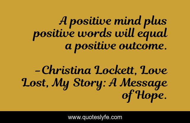 "Christina Lockett, Love Lost, My Story: A Message of Hope. Quotes." Quoteslyfe.com, 2025. Sat. 06 Dec. 2025. <https://www.quoteslyfe.com/quote/A-positive-mind-plus-positive-words-will-172558>.