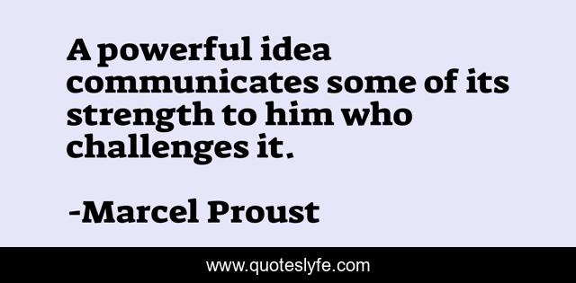 This page presents the quote "A powerful idea communicates some of its strength to him who challenges it.". Author of this quote is Marcel Proust. This quote is about strength, powerful,.