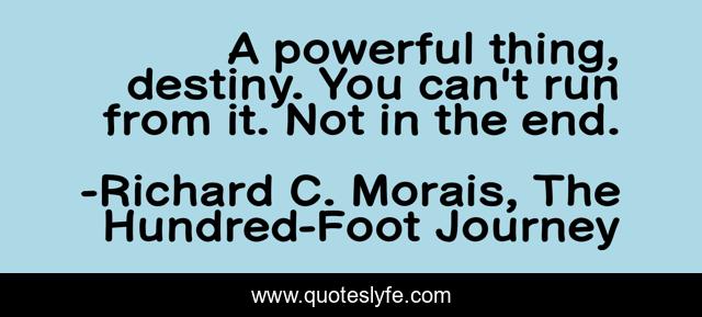This page presents the quote "A powerful thing, destiny. You can't run from it. Not in the end.". Author of this quote is Richard C. Morais, The Hundred-Foot Journey. This quote is about life, destiny,.