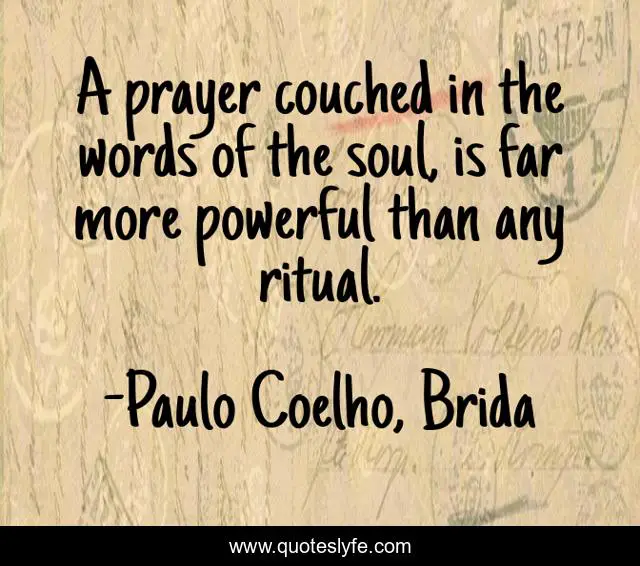 This page presents the quote "A prayer couched in the words of the soul, is far more powerful than any ritual.". Author of this quote is Paulo Coelho, Brida. This quote is about ritual, prayer,.
