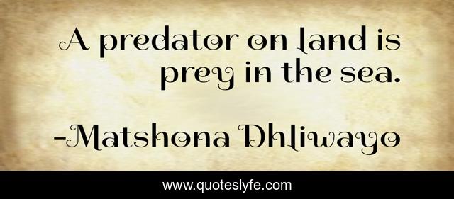 "Matshona Dhliwayo Quotes." Quoteslyfe.com, 2025. Fri. 05 Dec. 2025. <https://www.quoteslyfe.com/quote/A-predator-on-land-is-prey-in-98606>.