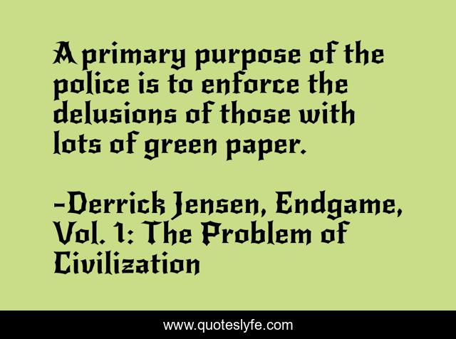 "Derrick Jensen, Endgame, Vol. 1: The Problem of Civilization Quotes." Quoteslyfe.com, 2025. Mon. 08 Dec. 2025. <https://www.quoteslyfe.com/quote/A-primary-purpose-of-the-police-is-79804>.
