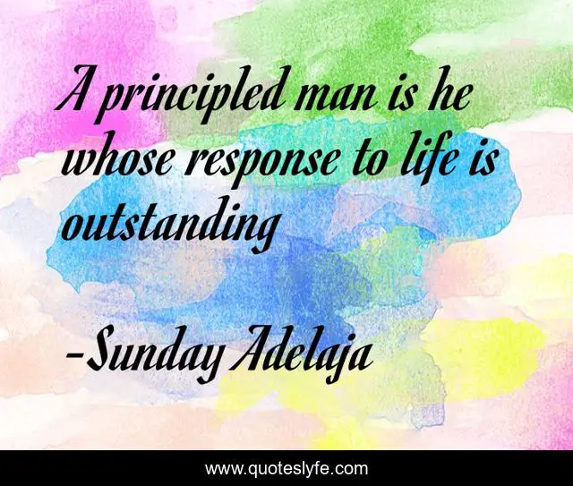 This page presents the quote "A principled man is he whose response to life is outstanding". Author of this quote is Sunday Adelaja. This quote is about life, principle, response, man, outstanding,.