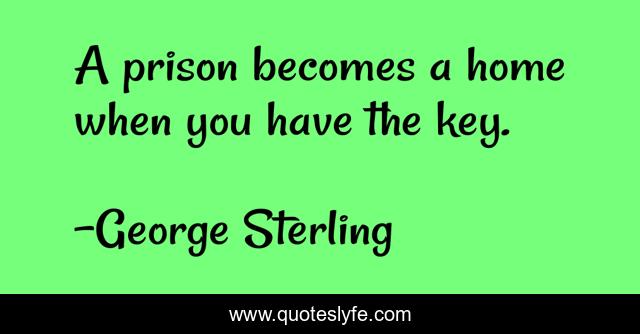 This page presents the quote "A prison becomes a home when you have the key.". Author of this quote is George Sterling. This quote is about philosophy, conformity, anarchy,.
