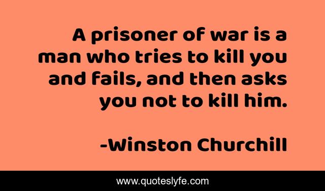 This page presents the quote "A prisoner of war is a man who tries to kill you and fails, and then asks you not to kill him.". Author of this quote is Winston Churchill. This quote is about him, man,.