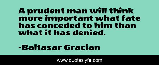 This page presents the quote "A prudent man will think more important what fate has conceded to him than what it has denied.". Author of this quote is Baltasar Gracian. .