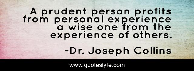 This page presents the quote "A prudent person profits from personal experience a wise one from the experience of others.". Author of this quote is Dr. Joseph Collins. This quote is about models, role,.
