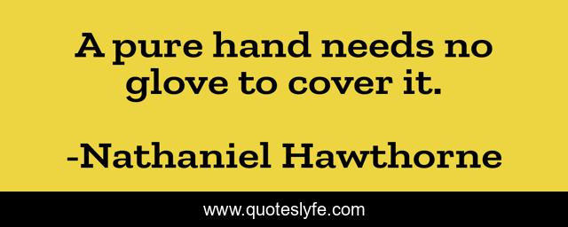 This page presents the quote "A pure hand needs no glove to cover it.". Author of this quote is Nathaniel Hawthorne. This quote is about cover, pure, hand,.