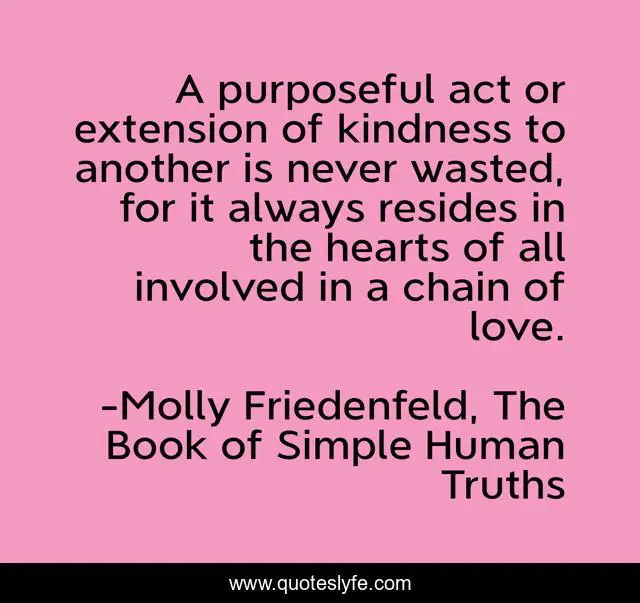 "Molly Friedenfeld, The Book of Simple Human Truths Quotes." Quoteslyfe.com, 2025. Sat. 06 Dec. 2025. <https://www.quoteslyfe.com/quote/A-purposeful-act-or-extension-of-kindness-136738>.