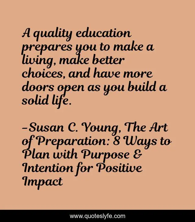 "Susan C. Young, The Art of Preparation: 8 Ways to Plan with Purpose & Intention for Positive Impact Quotes." Quoteslyfe.com, 2025. Mon. 08 Dec. 2025. <https://www.quoteslyfe.com/quote/A-quality-education-prepares-you-to-make-227428>.