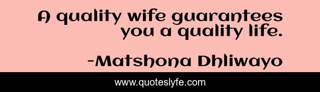 "Matshona Dhliwayo Quotes." Quoteslyfe.com, 2025. Sat. 06 Dec. 2025. <https://www.quoteslyfe.com/quote/A-quality-wife-guarantees-you-a-quality-198824>.