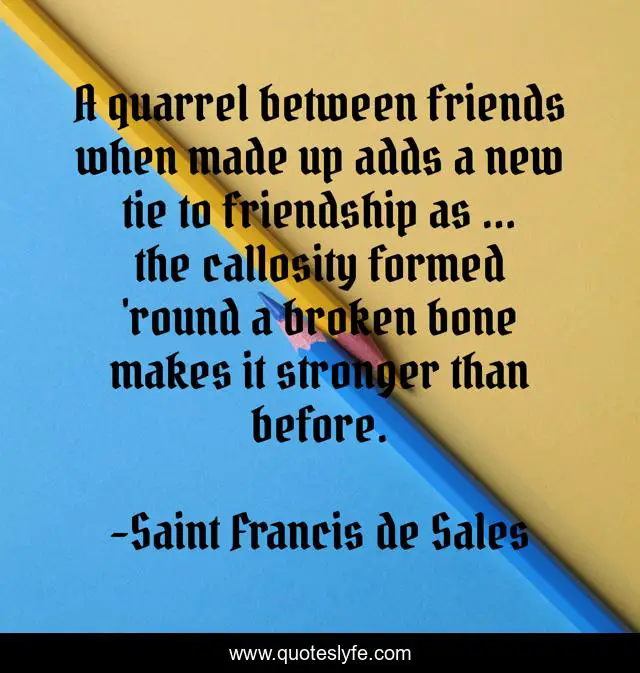 This page presents the quote "A quarrel between friends when made up adds a new tie to friendship as ... the callosity formed 'round a broken bone makes it stronger than before.". Author of this quote is Saint Francis de Sales. .