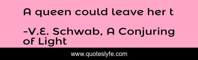 "V.E. Schwab, A Conjuring of Light Quotes." Quoteslyfe.com, 2025. Sat. 06 Dec. 2025. <https://www.quoteslyfe.com/quote/A-queen-could-leave-her-t-207910>.