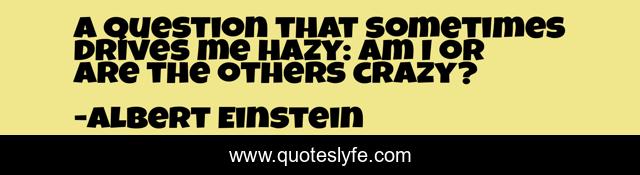 This page presents the quote "A question that sometimes drives me hazy: am I or are the others crazy?". Author of this quote is Albert Einstein. This quote is about question, crazy, thought-provoking,.
