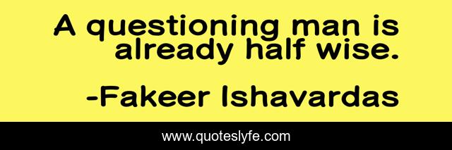 "Fakeer Ishavardas Quotes." Quoteslyfe.com, 2025. Fri. 05 Dec. 2025. <https://www.quoteslyfe.com/quote/A-questioning-man-is-already-half-wise-116094>.