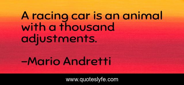 This page presents the quote "A racing car is an animal with a thousand adjustments.". Author of this quote is Mario Andretti. This quote is about thousand, racing, animal,.