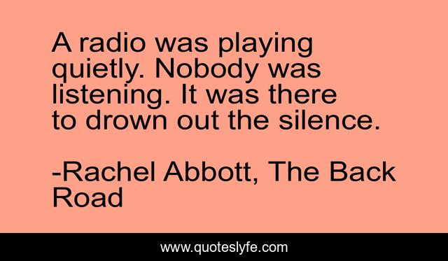 This page presents the quote "A radio was playing quietly. Nobody was listening. It was there to drown out the silence.". Author of this quote is Rachel Abbott, The Back Road. This quote is about depression, loneliness, sadness, silence,.