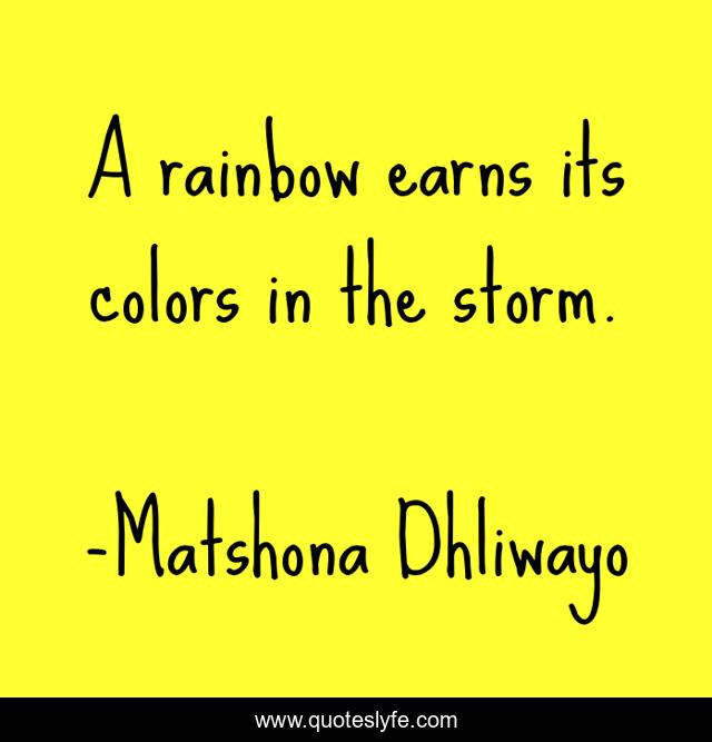 "Matshona Dhliwayo Quotes." Quoteslyfe.com, 2025. Mon. 08 Dec. 2025. <https://www.quoteslyfe.com/quote/A-rainbow-earns-its-colors-in-the-83474>.