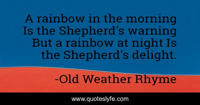 This page presents the quote "A rainbow in the morning Is the Shepherd's warning But a rainbow at night Is the Shepherd's delight.". Author of this quote is Old Weather Rhyme. .