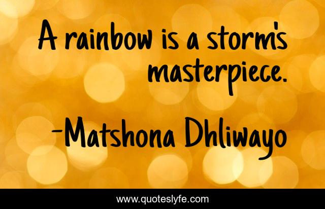 "Matshona Dhliwayo Quotes." Quoteslyfe.com, 2025. Fri. 05 Dec. 2025. <https://www.quoteslyfe.com/quote/A-rainbow-is-a-storm-s-masterpiece-225305>.
