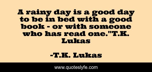 This page presents the quote "A rainy day is a good day to be in bed with a good book - or with someone who has read one."T.K. Lukas". Author of this quote is T.K. Lukas. .